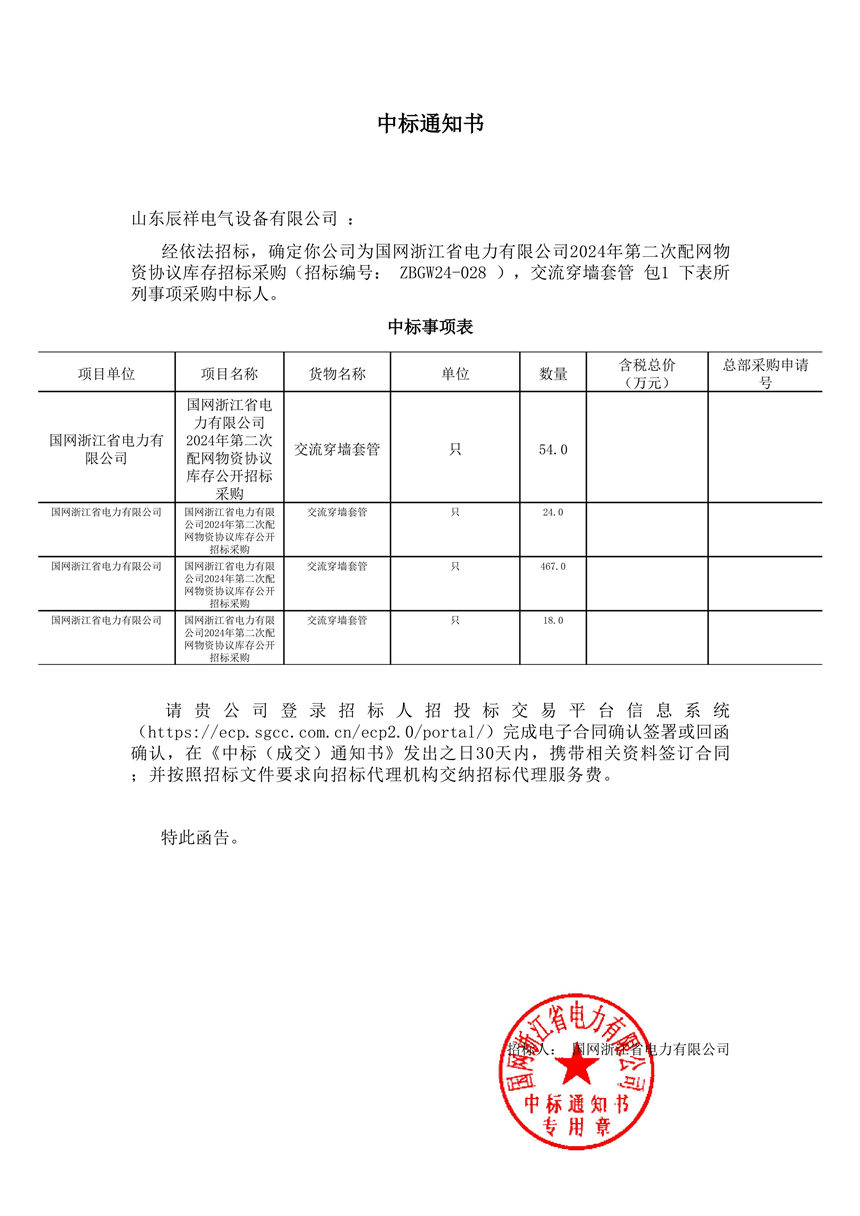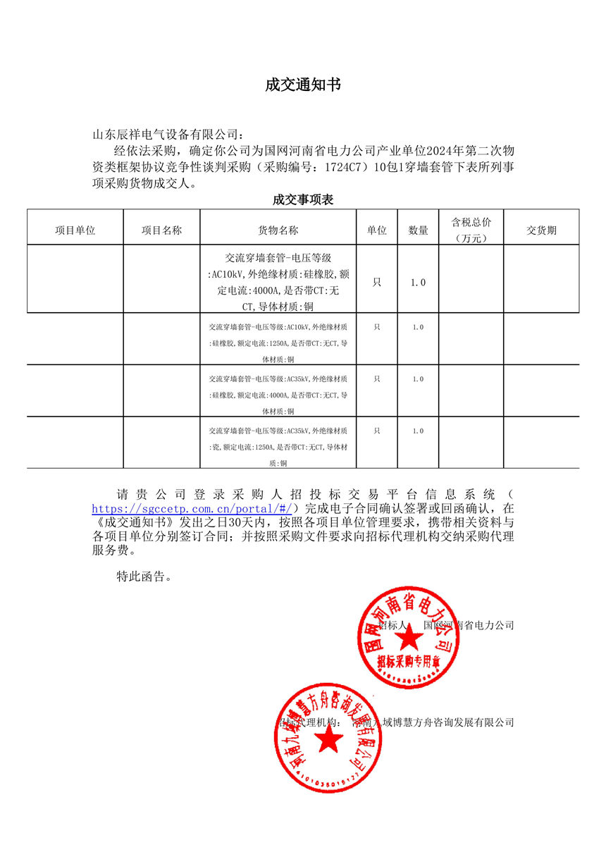 • 2024.11.29 交流穿墻套管中標(biāo)通知書(shū)