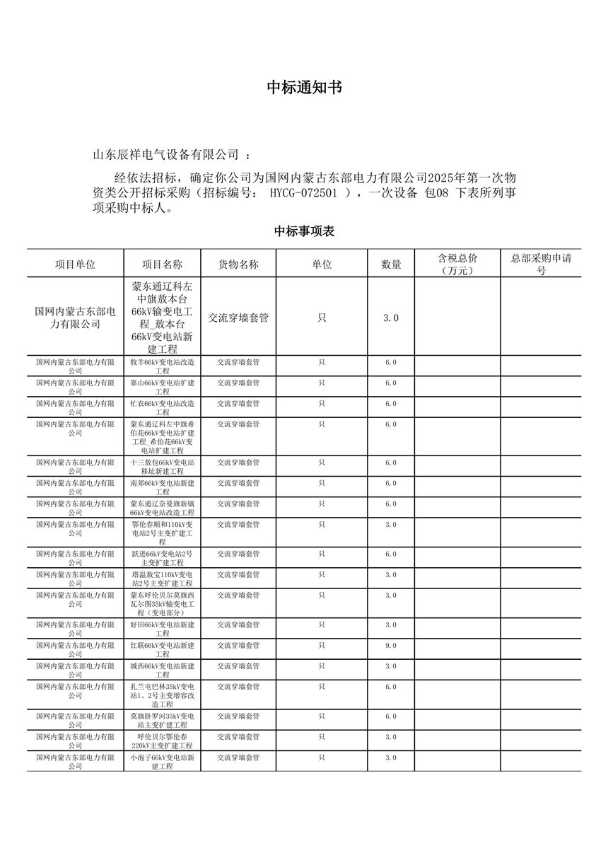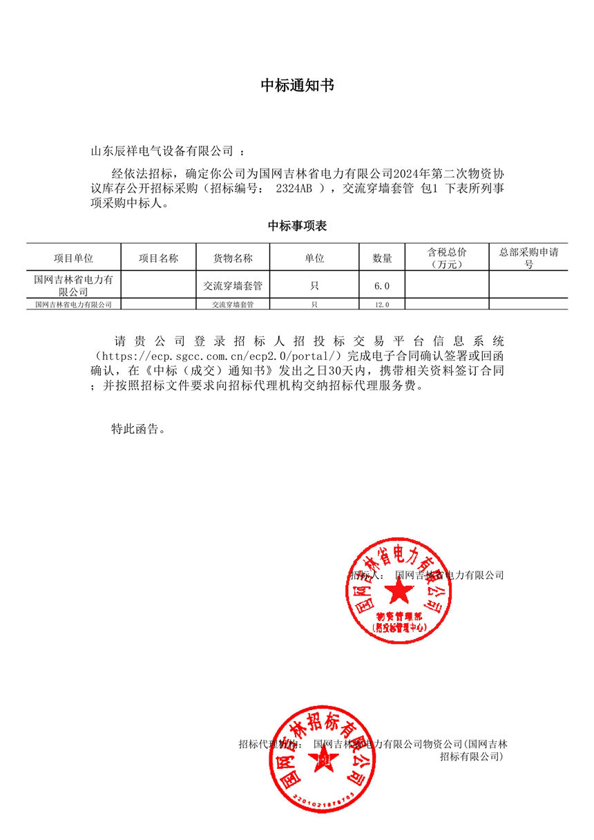 • 2025.01.03 交流穿墻套管中標(biāo)通知書(shū)