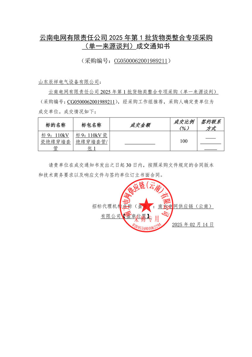 2025.02.14 110kV瓷絕緣穿墻套管中標(biāo)通知書(shū)